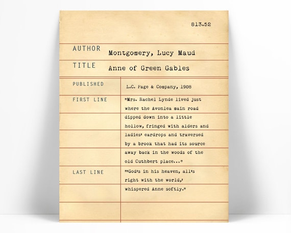 Anne Of Green Gables By Lucy Maud Montgomery Library Card Etsy